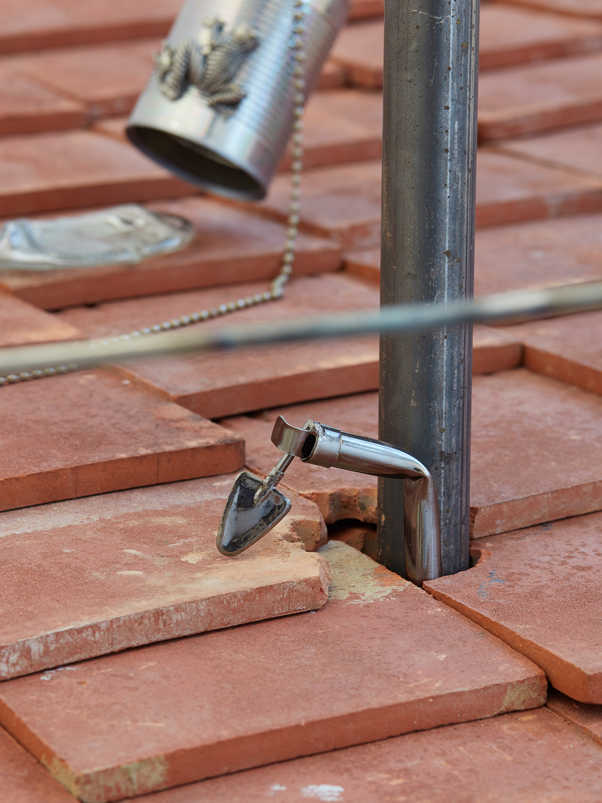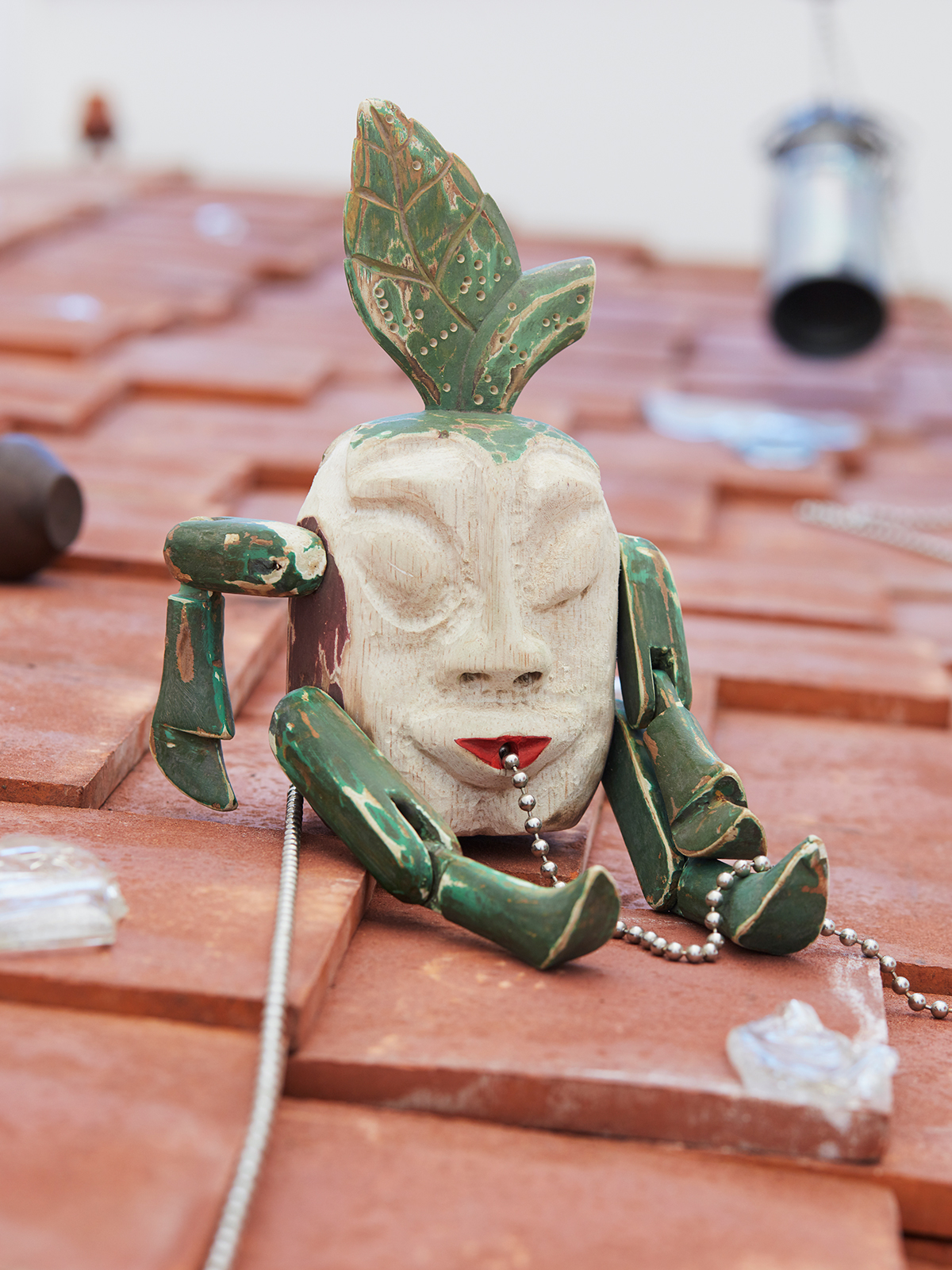 ESOL Parcheesi, 2016. Installation detail, Roman Road gallery, London, UK. Timber, clay, glass, steel, installation dimensions variable.