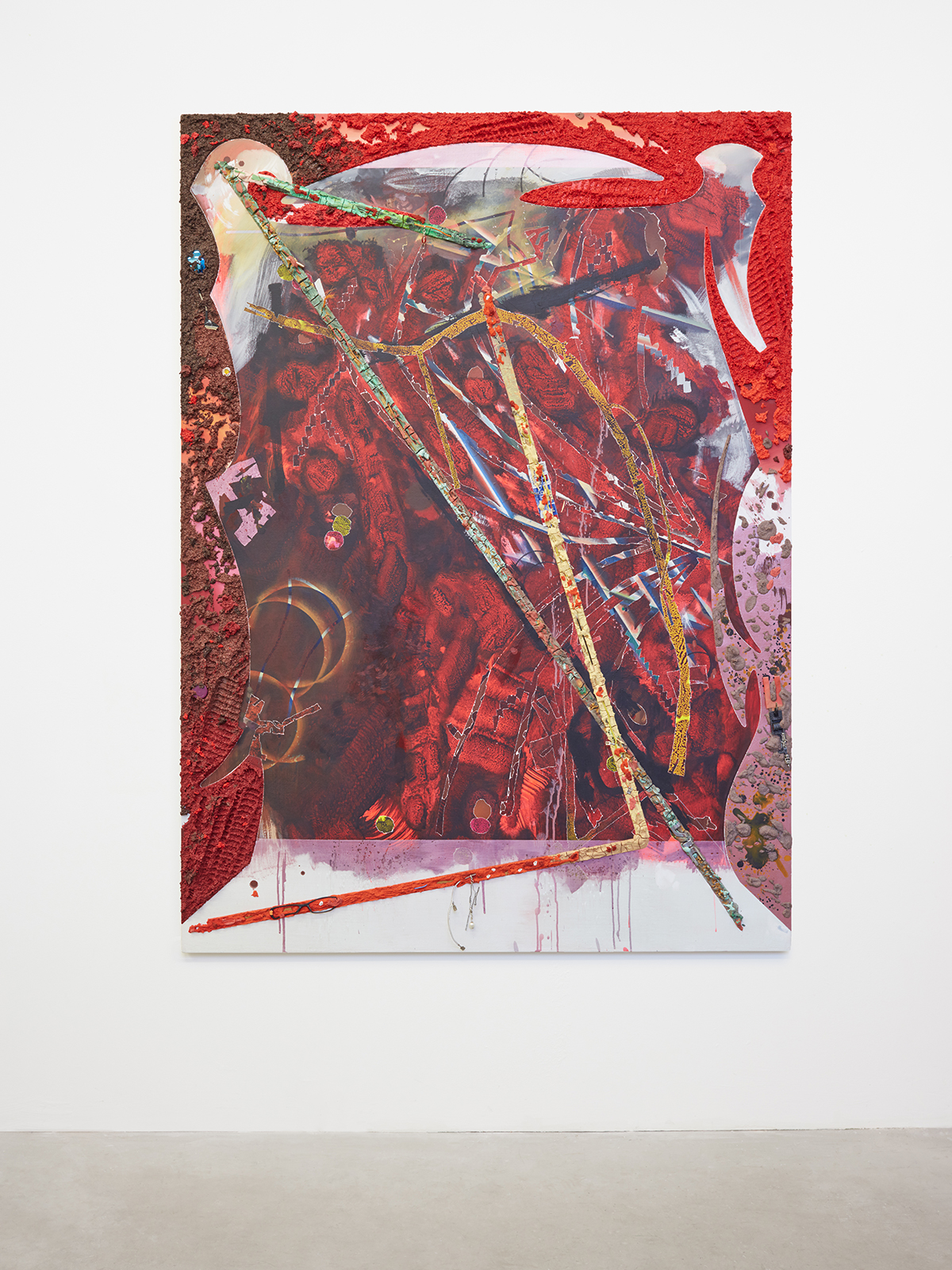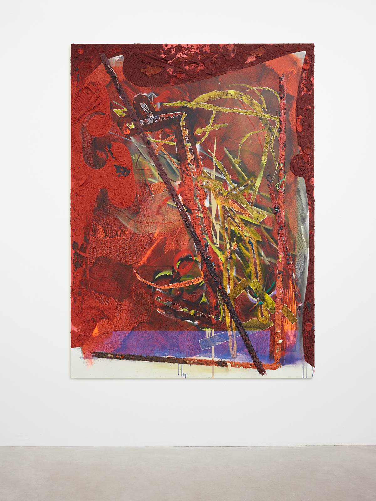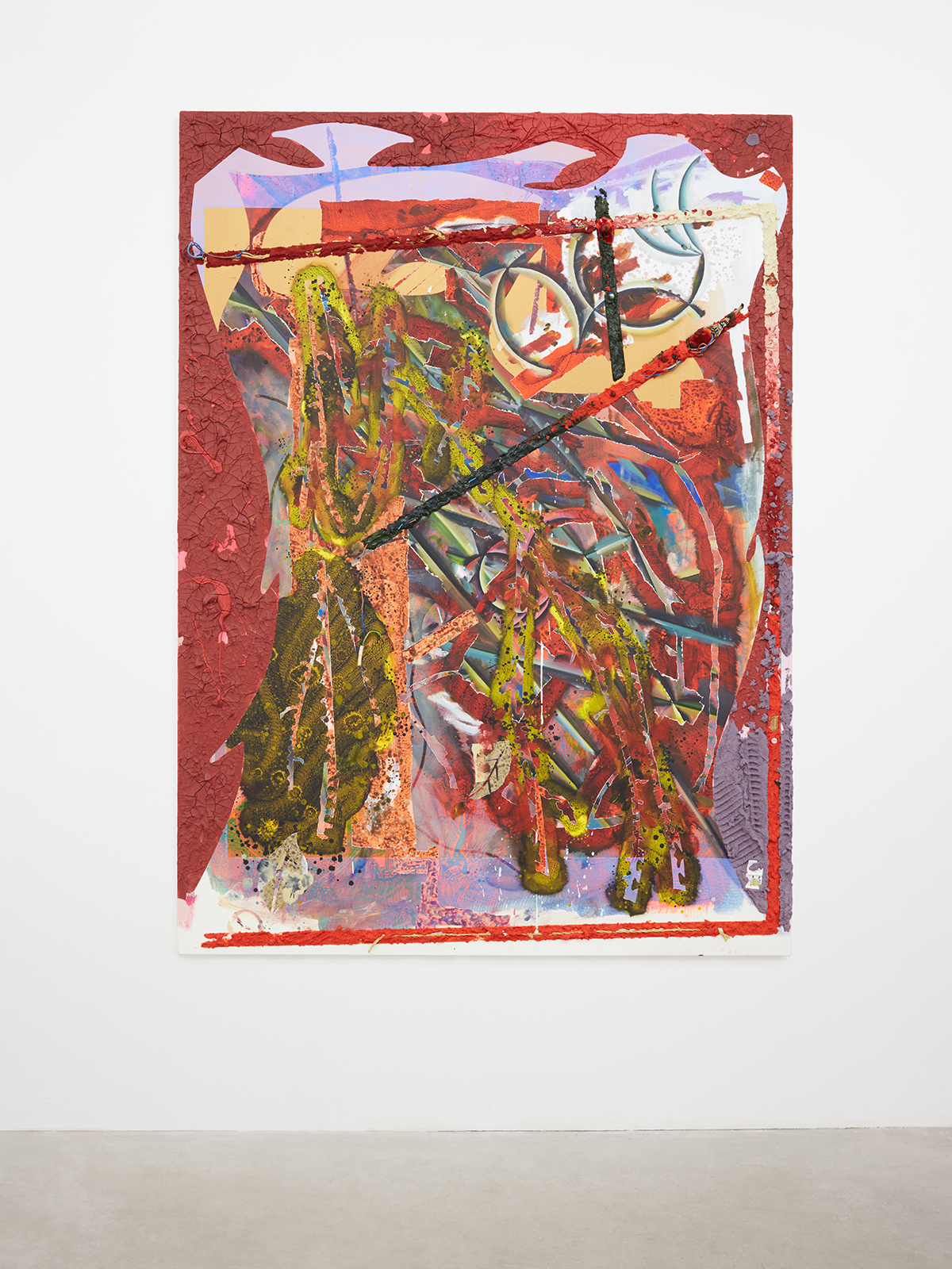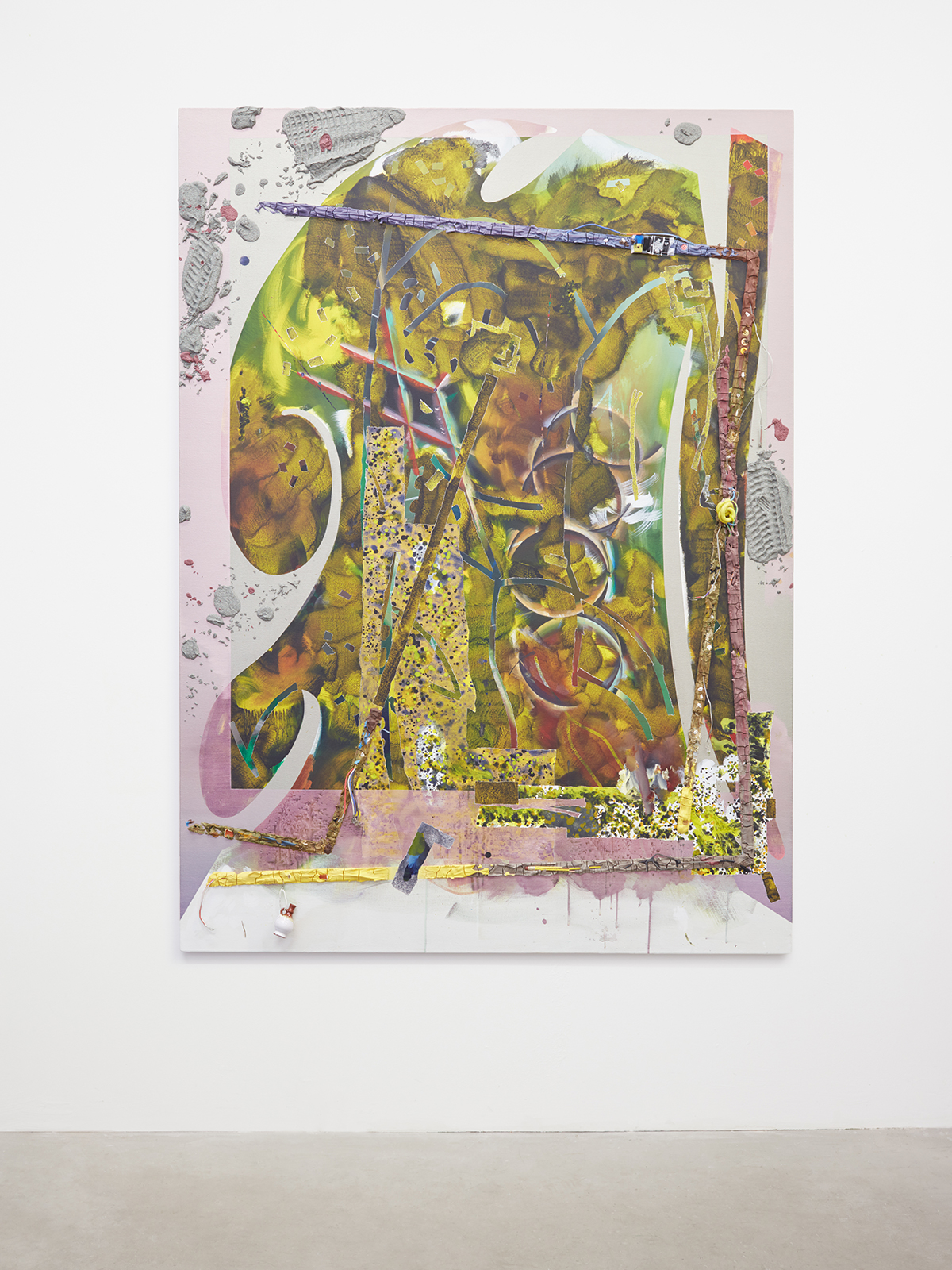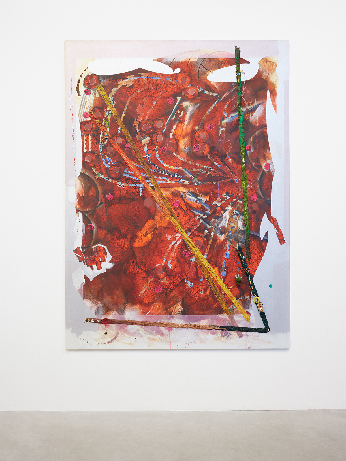 Warm Sugarcane Juice, 2016. Acrylic, modelling paste and found objects on canvas, 167 x 121 cm.