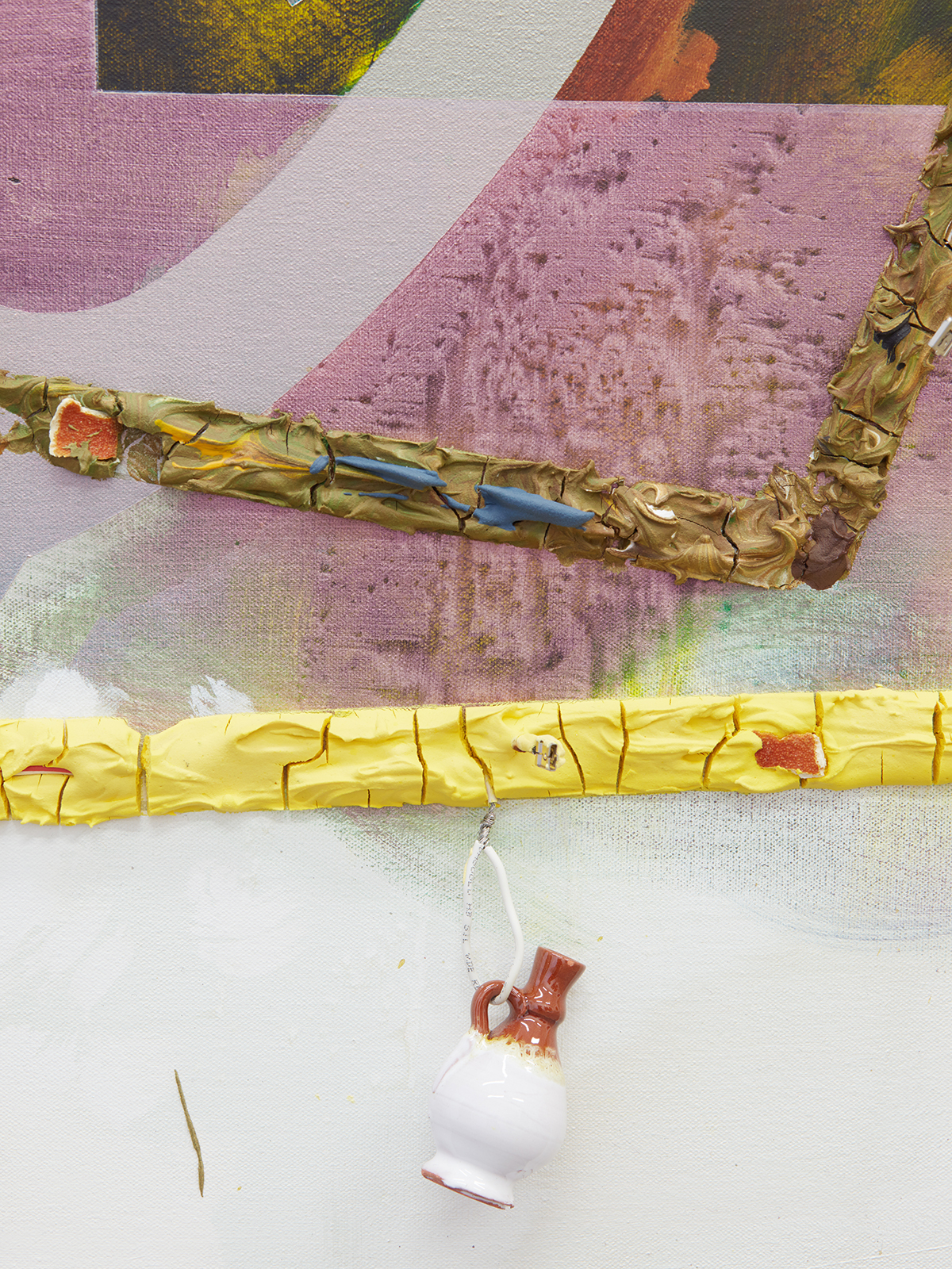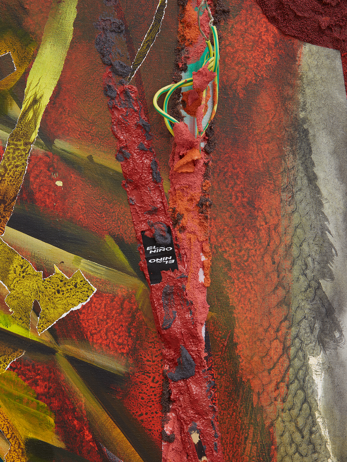Warm Sugarcane Juice (Detail), 2016. Acrylic, modelling paste and found objects on canvas, 167 x 121 cm.
